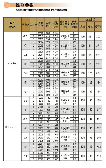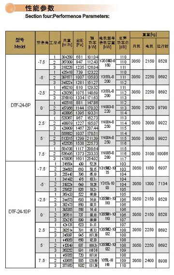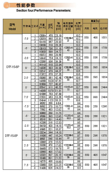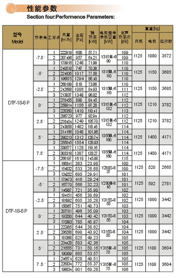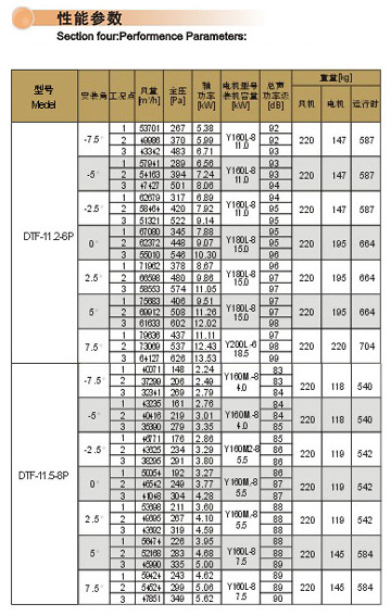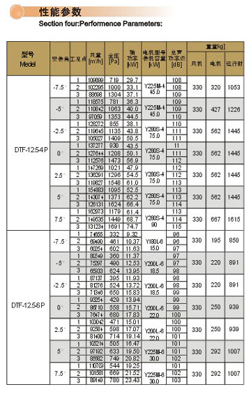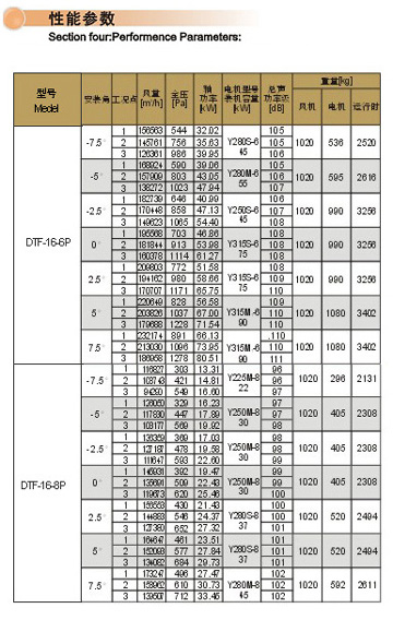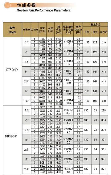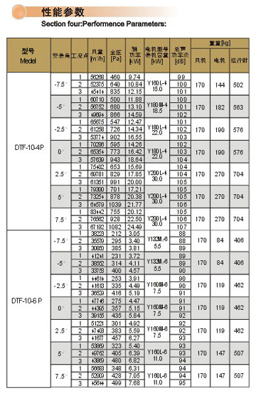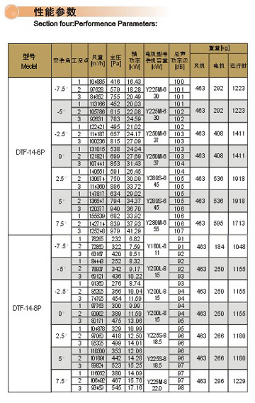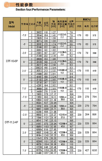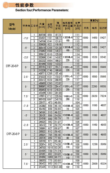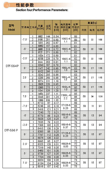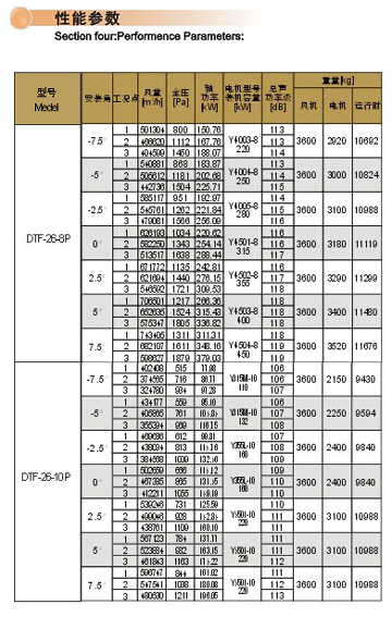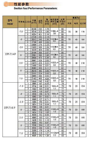 DTF系列風機又分為三類,即DTF(H)型排熱風機(地鐵稱UPE/OTE風機)、DTF(S)型消防排煙風機、DTF(V)型通風排風機。其中DTF(H)型從10~24#有10種機號,DTF(S)型從8~24#有12種機號,DTF(V)從5~28#有18種機號。