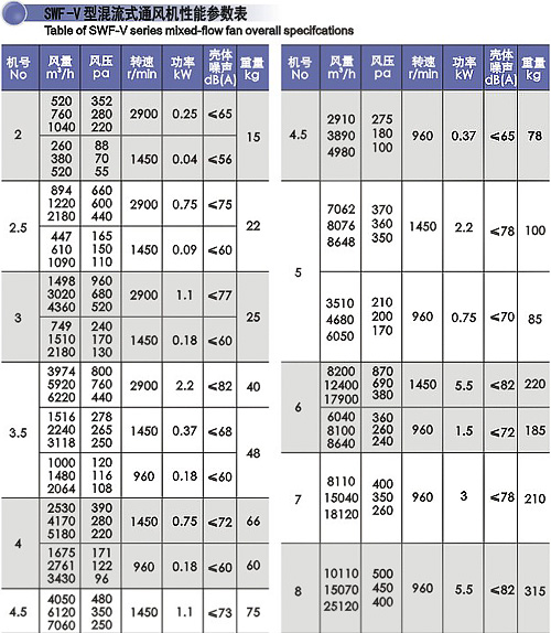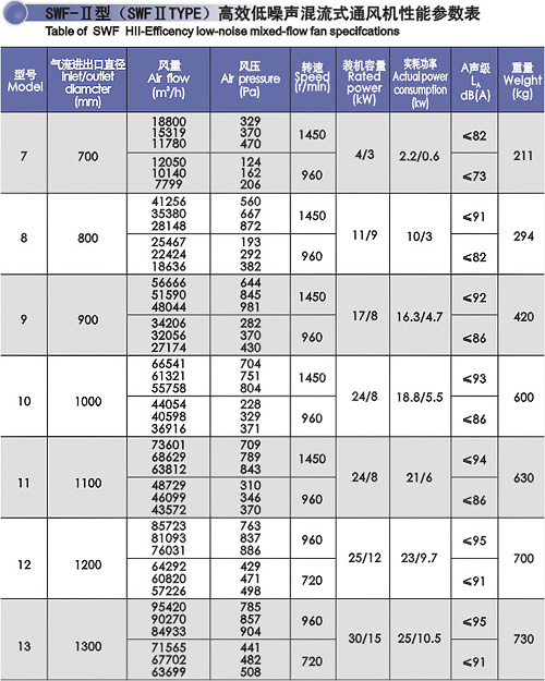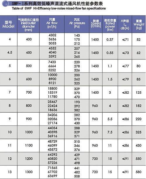 | SWF系列混流式通風機由上海交通大學、上虞風機廠共同研制開發,具有同機號風機量較離心風機大,風壓較軸流風機高,可以軸向安裝等特點。本系列風機應用場合廣泛,如各類高級民用建筑、工礦企業等。北京首都賓館、亞運工程二十三個場館所、新華社大樓、五州大酒店、北京人民大會堂、釣魚臺國賓館等單位和上海、深圳等大城市都采用此類產品,還批量出口新加坡等東南亞地區和配套出口日本。 SWF系列混流風機具有效率高、結構緊湊,安裝方便、運行可靠、噪聲低等顯著特點,它榮獲了國家級“星火”獎、上海市科技進步獎,獲國家實用新型專利、被國家科委列入國家級重點科技成果推廣項目產品。 |